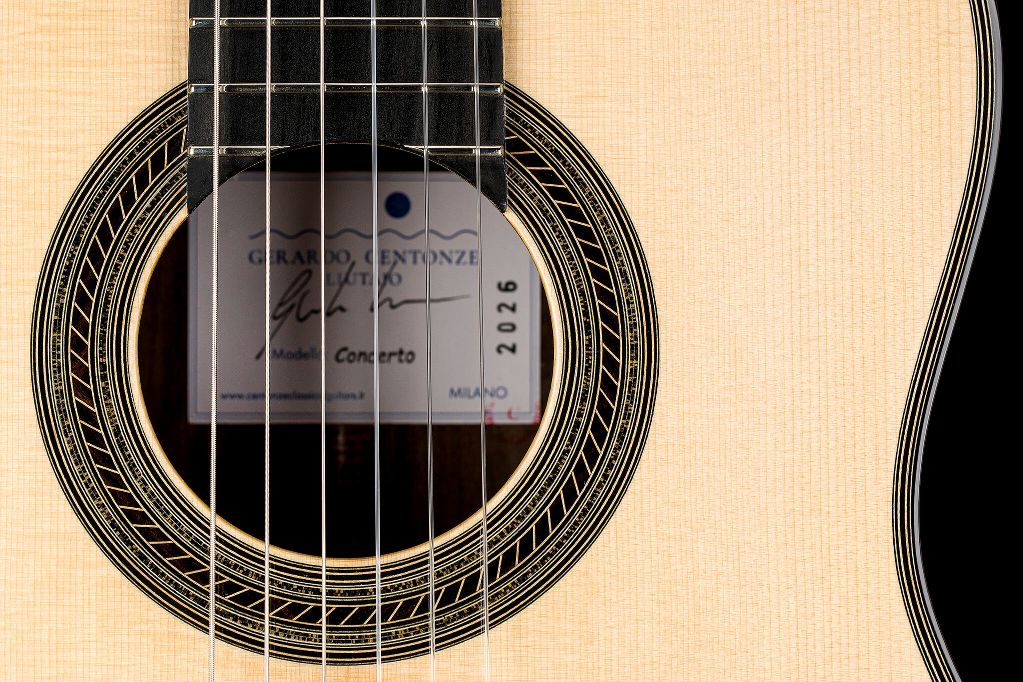 In the same year, Gerardo Centonze established his own workshop in Milan, where he builds classical guitars and restores historical instruments. Since 2021, he has participated as an exhibitor in several editions of the Roma Expo Guitar (REG). In 2023, in Granada, he was awarded 3rd Prize at the VI Marín Montero Guitar Building Competition in the classical guitar category.
