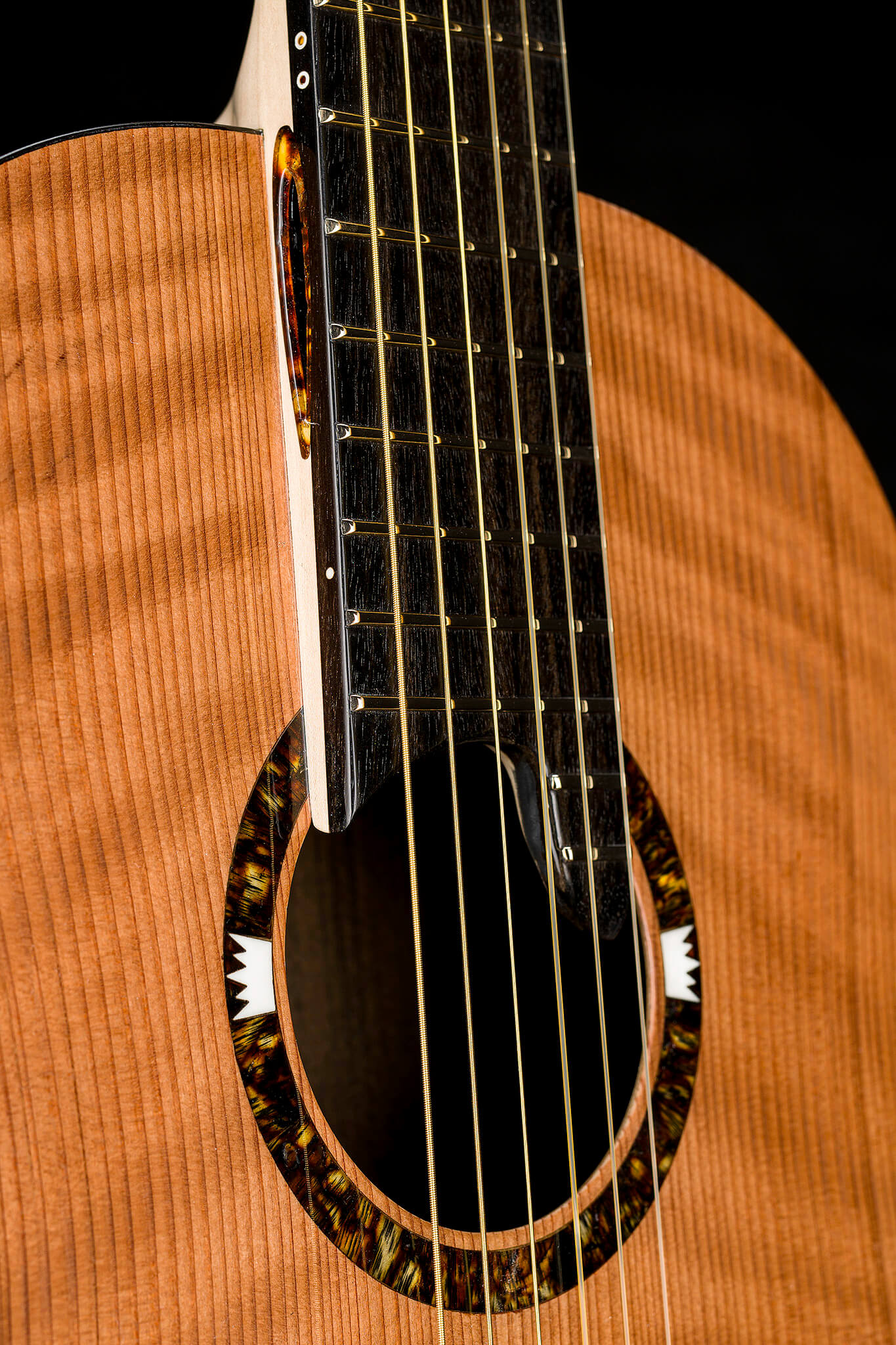 - soundboard: Double top – Highly-figured Old-growth Flamed Redwood (Master Grade)(top) / Western Red Cedar (Master Grade)(bottom)