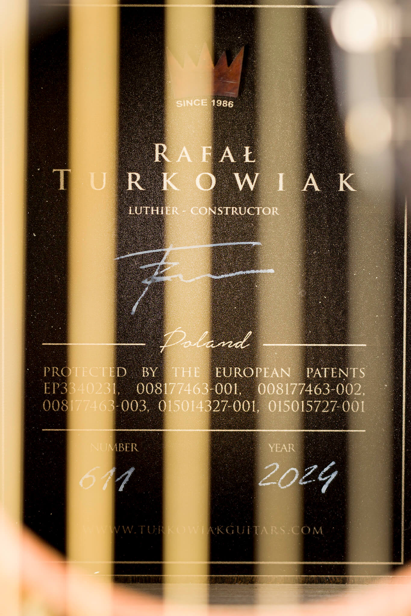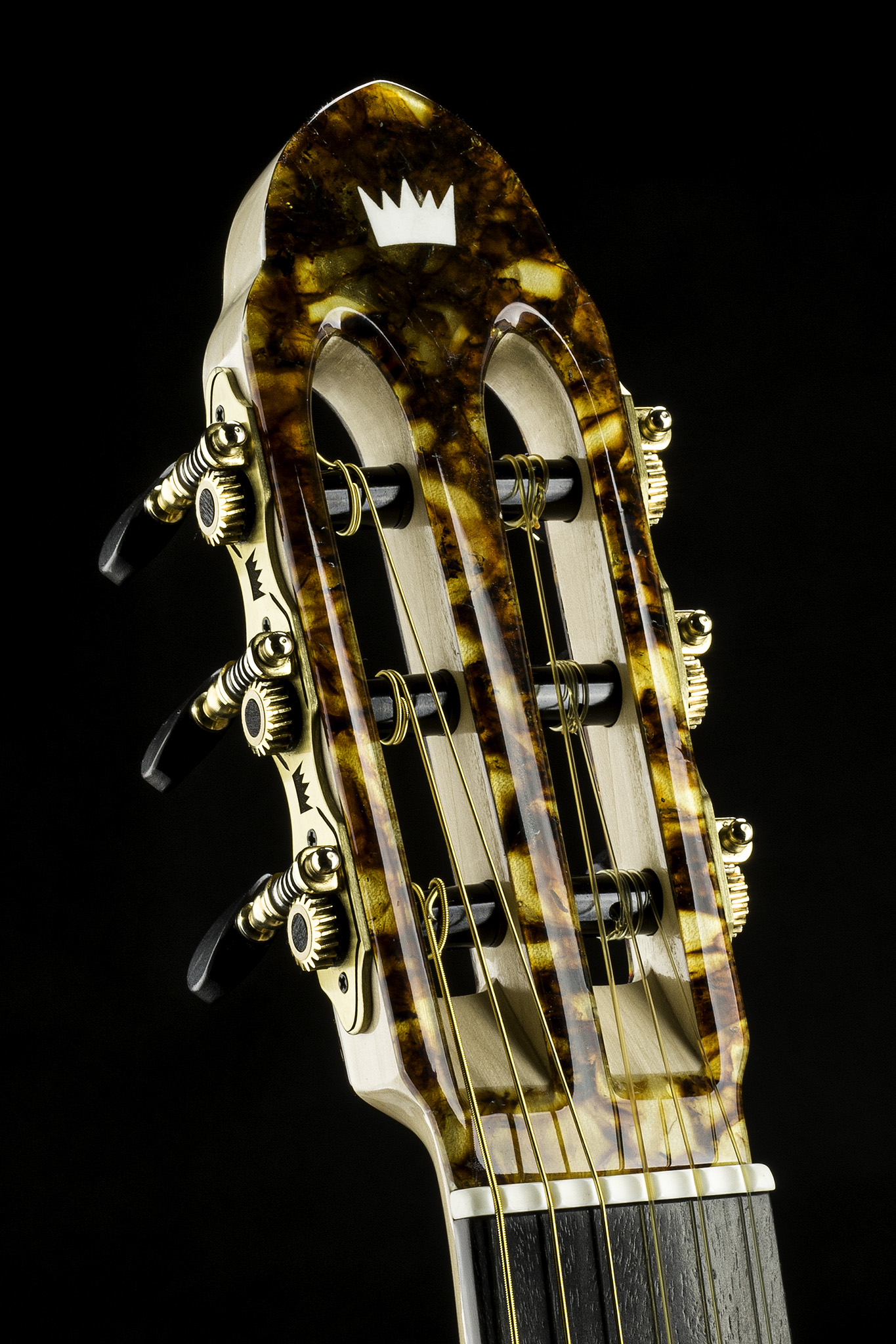 - Tuners: Highest-quality, handmade Gold ARTuners Turkowiak tuning machines with ebony buttons, black aluminum rollers with bearings, black wood screw inlay, ratio 18:1, with engravings