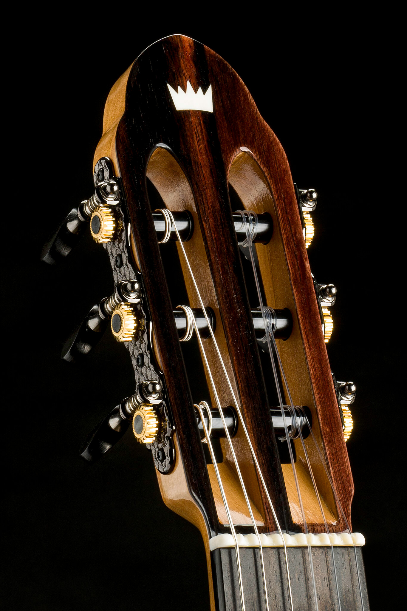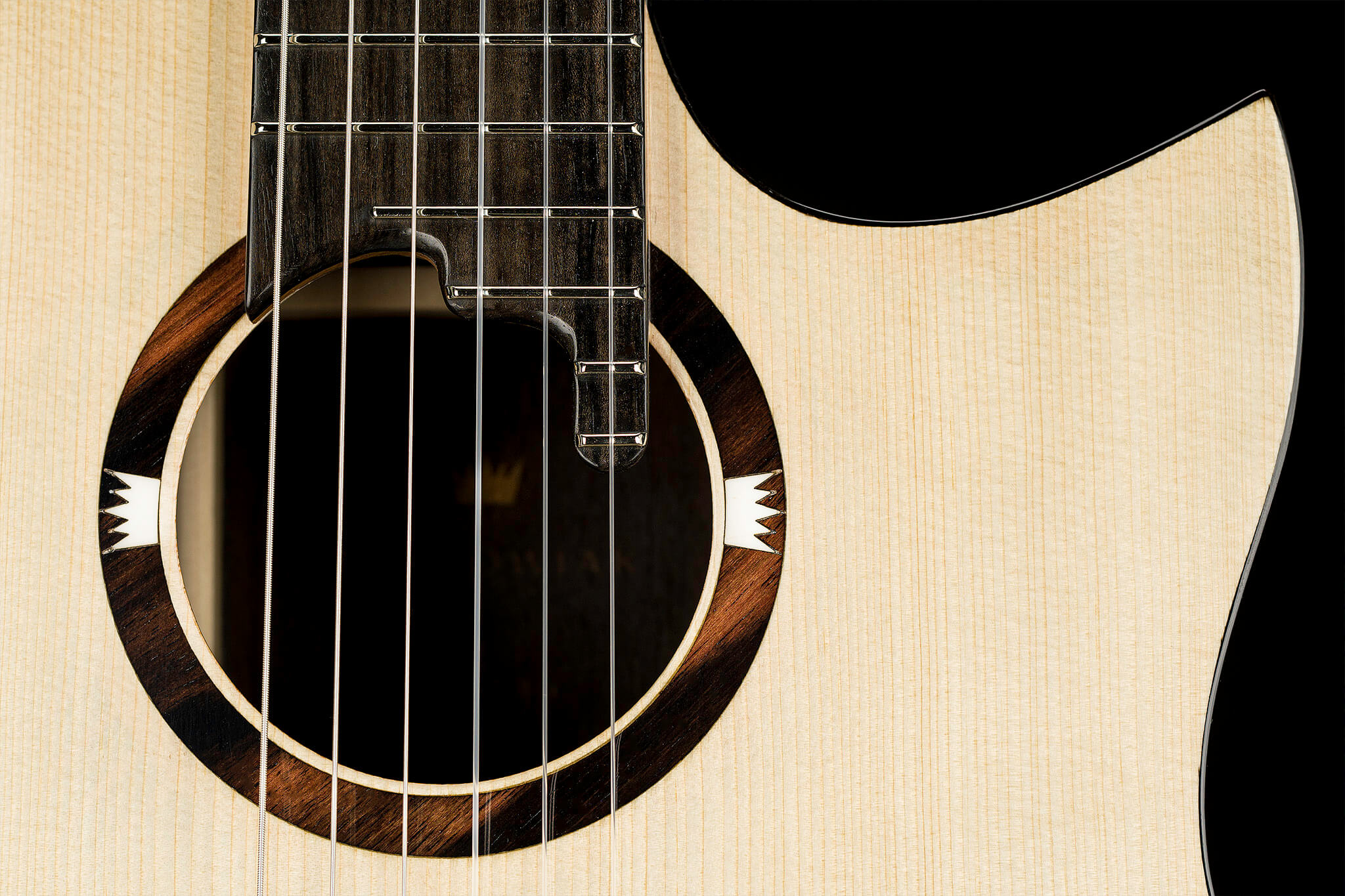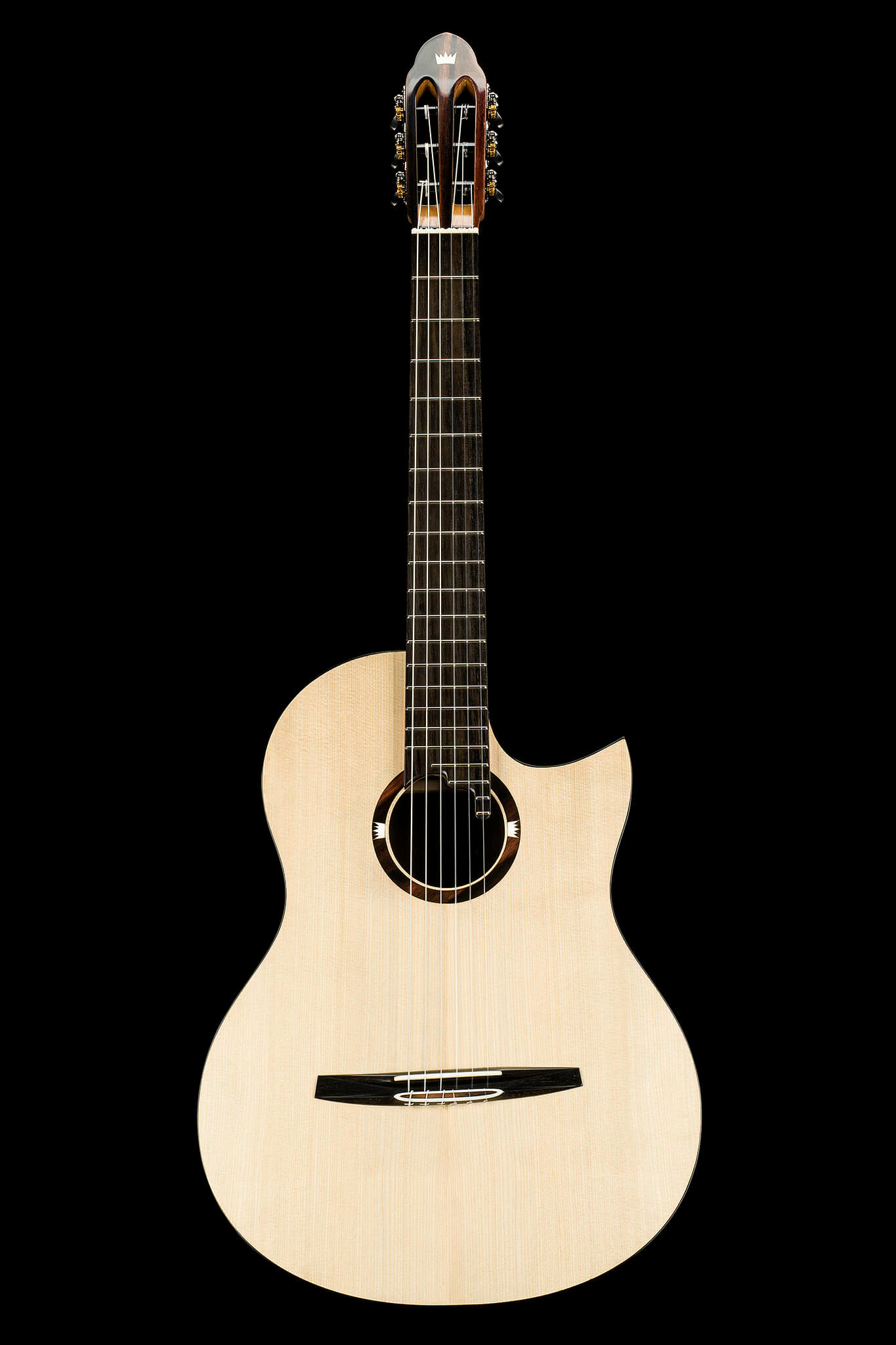 - central soundhole with Macassar Ebony plates and two natural bone crown logos