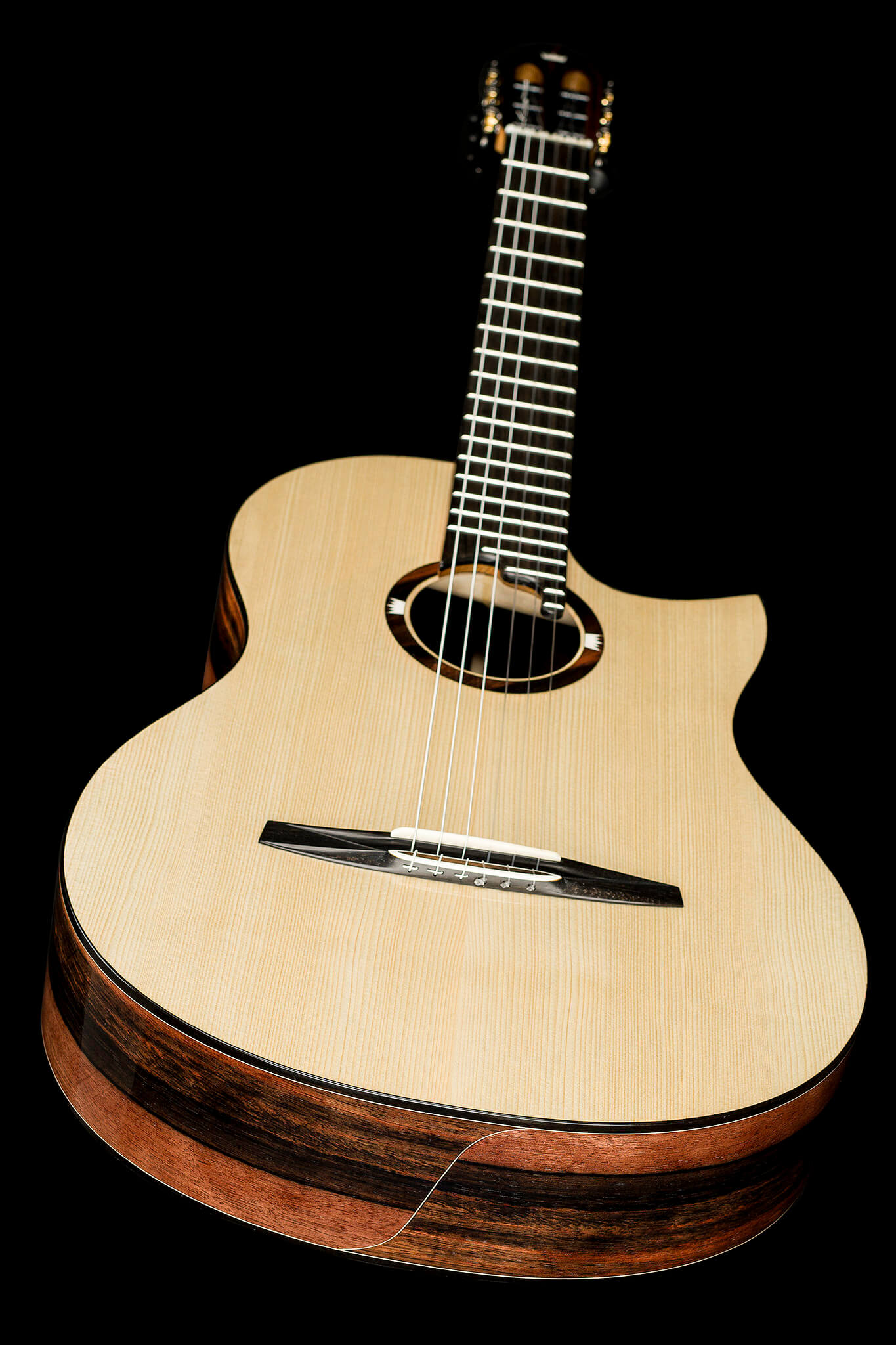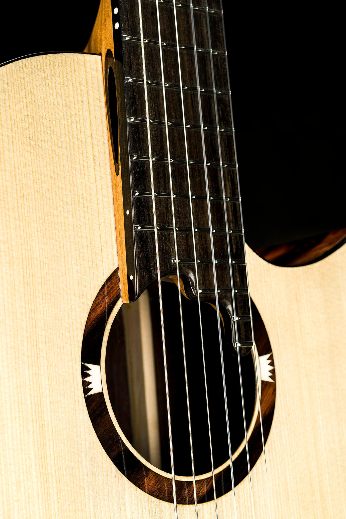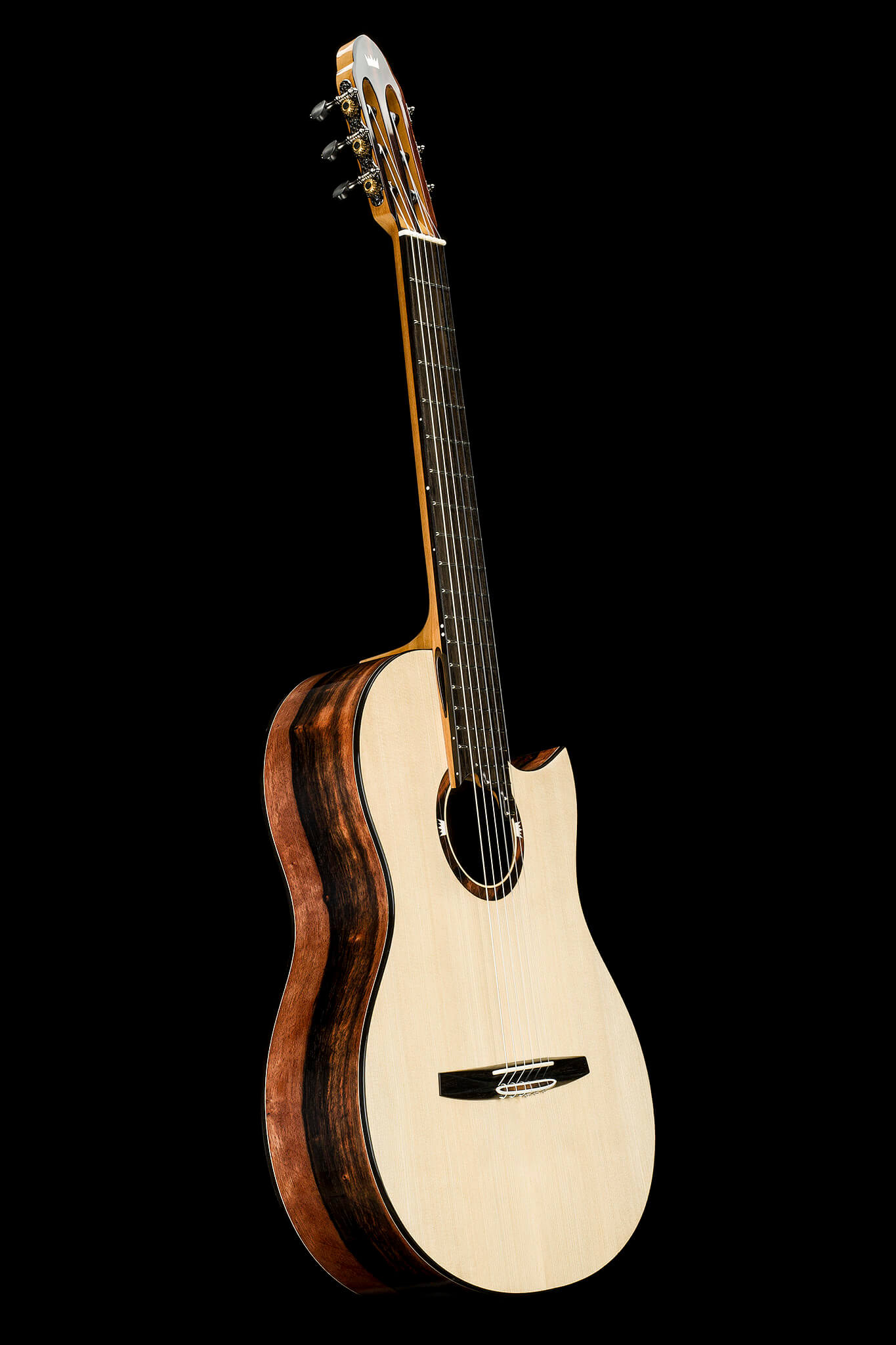 - central soundhole with Macassar Ebony plates and two natural bone crown logos