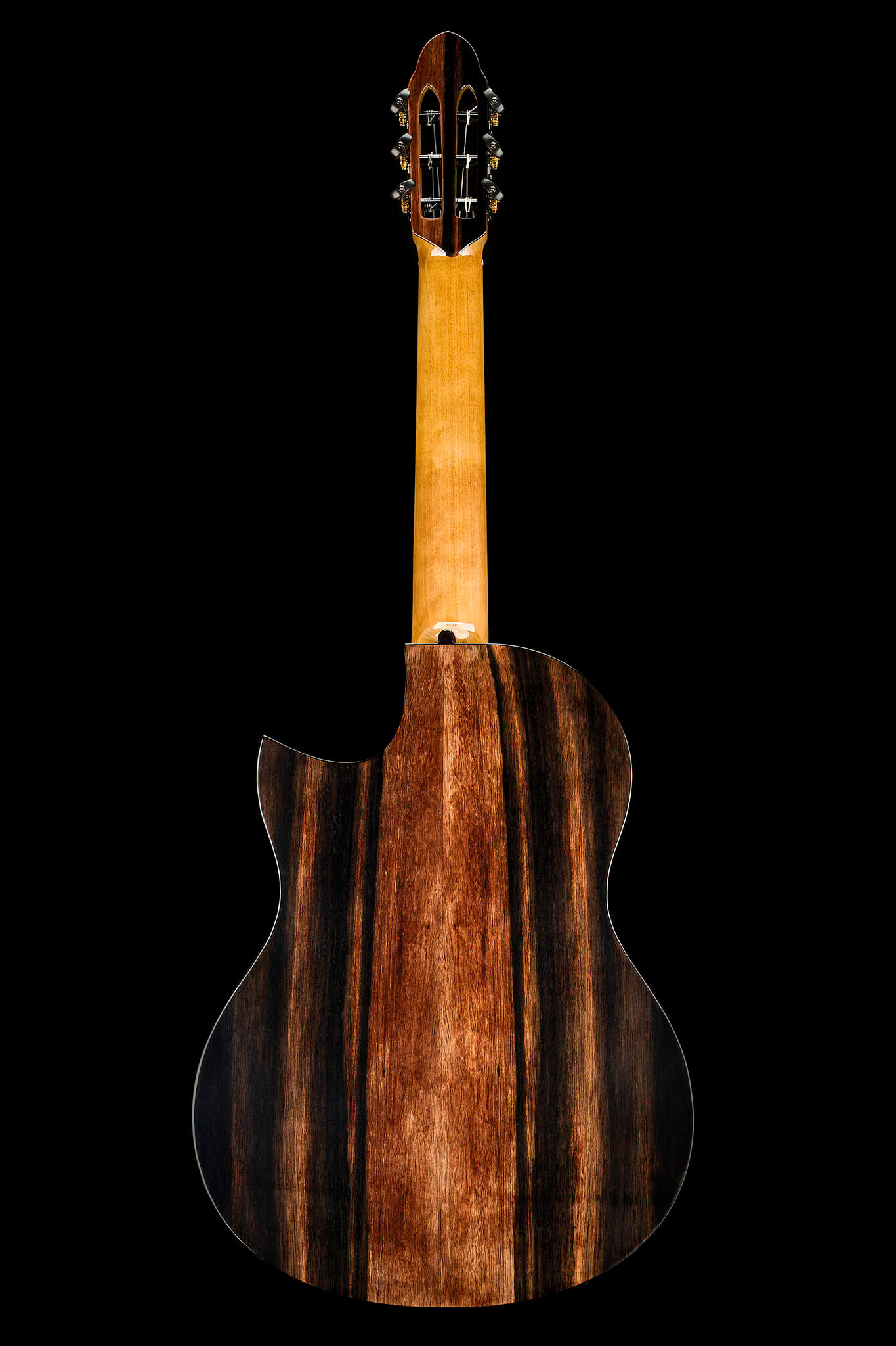 - ‘ACOUSTIC TUBES’ inside the guitar neck with African Ebony outlets