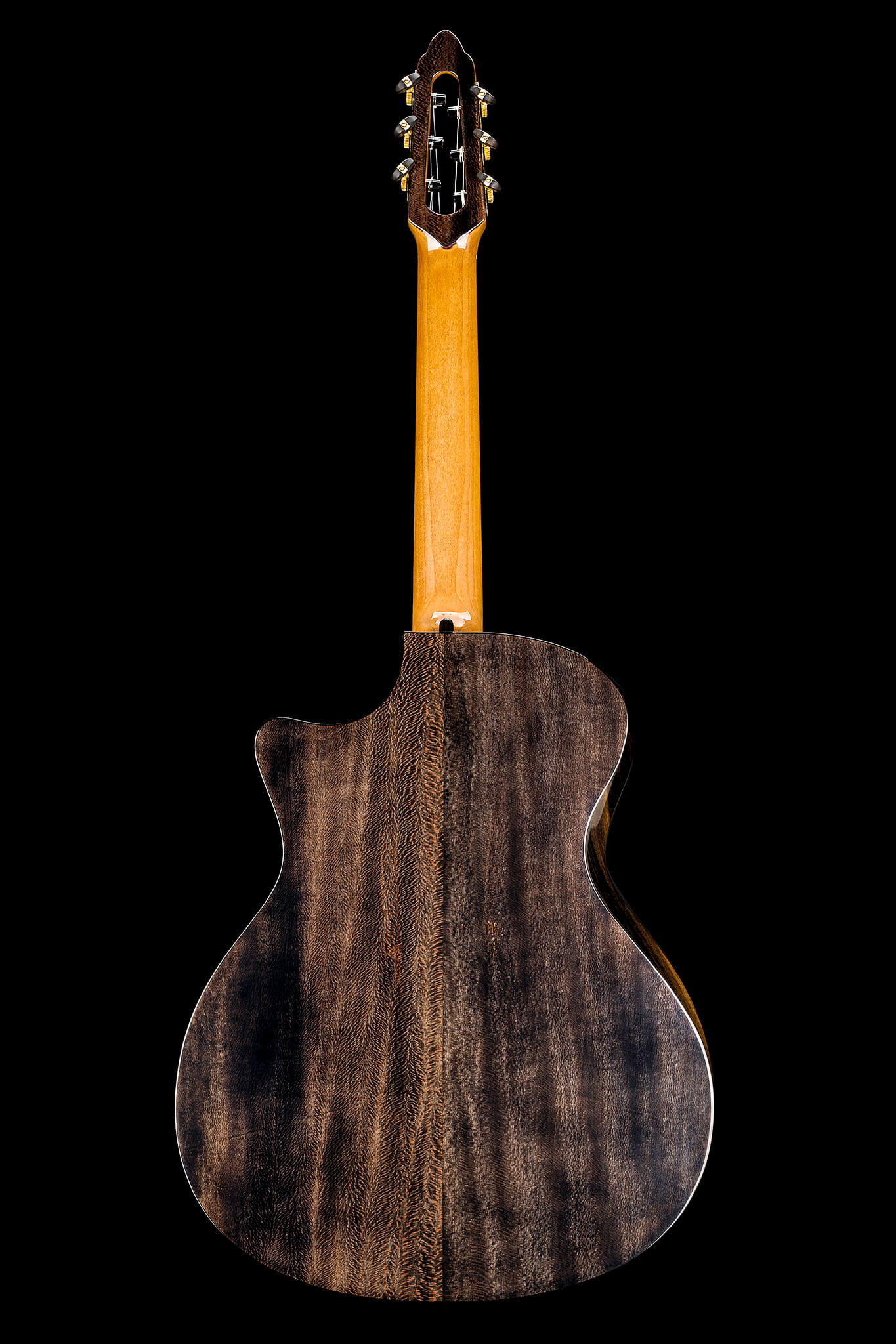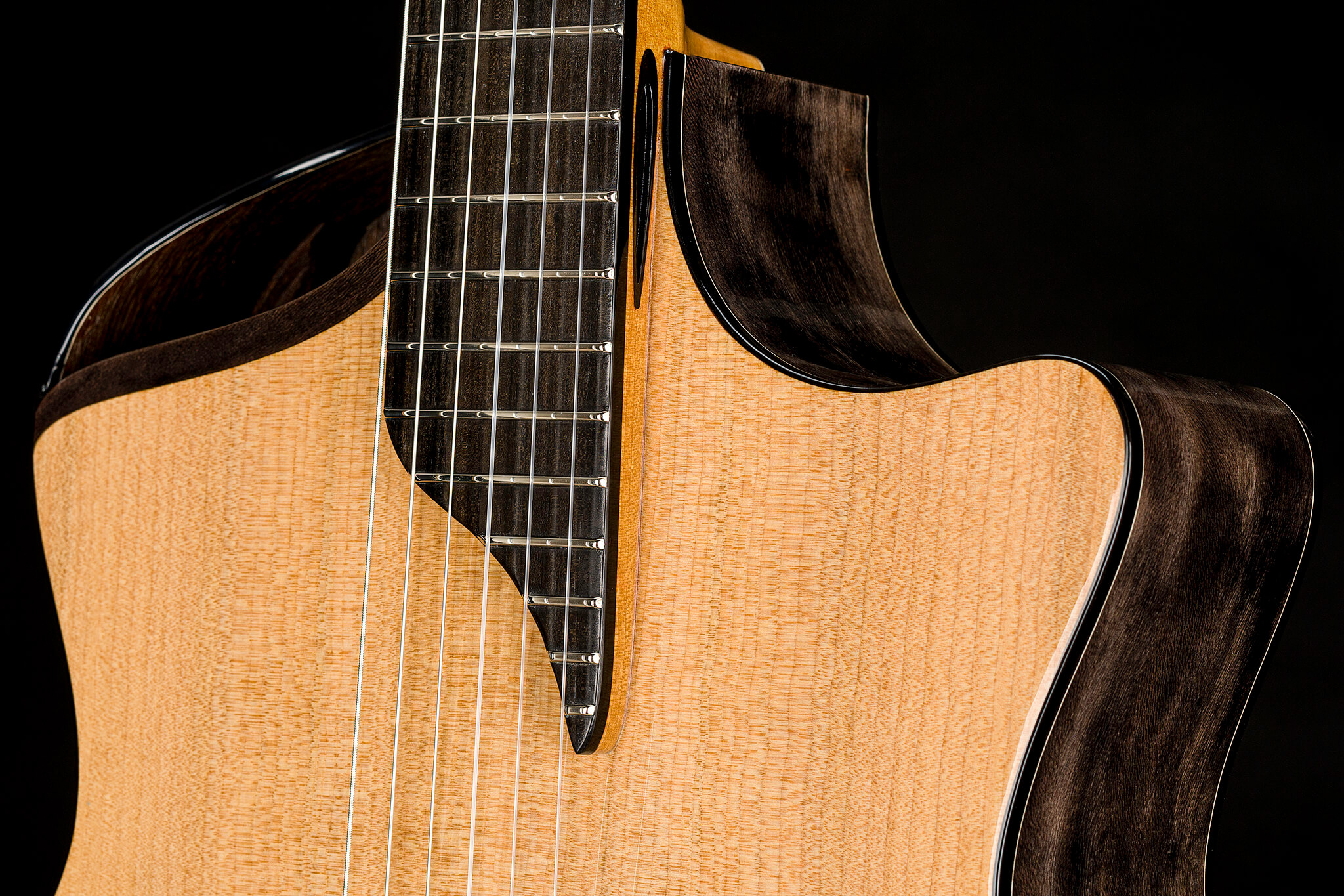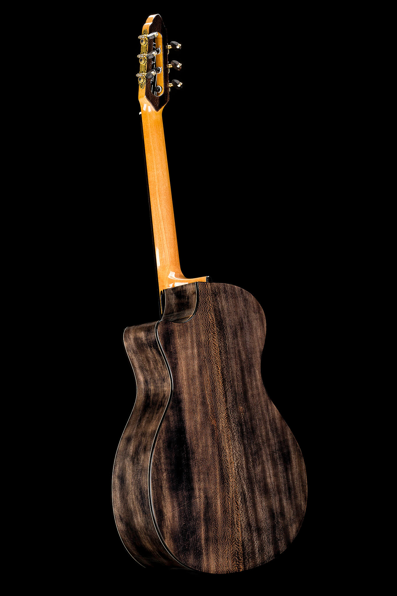 The Turkowiak Double-Top Nylon Jazz Crossover Opus Virtuoso #742 is a groundbreaking instrument that redefines what a modern crossover guitar can be. Handcrafted with a Cedar of Lebanon/Alpine Spruce double top and Jet Black Mod. EU Plane back and sides enhanced by the innovative A.R.S. (Acoustic Resonance System), this guitar blends traditional luthiery with world-first patented technologies. From the elevated African Ebony fingerboard with a 16″ compound radius to the offset soundhole, Baltic amber inlays, and Wave Resonator top, every detail has been meticulously designed for unparalleled projection, comfort, and tonal balance. With its innovative Ebony Impedance bridge, and Acoustic Tubes neck system, the Opus Virtuoso #742 offers extraordinary precision and resonance, making it a one-of-a-kind choice for discerning jazz and crossover players.